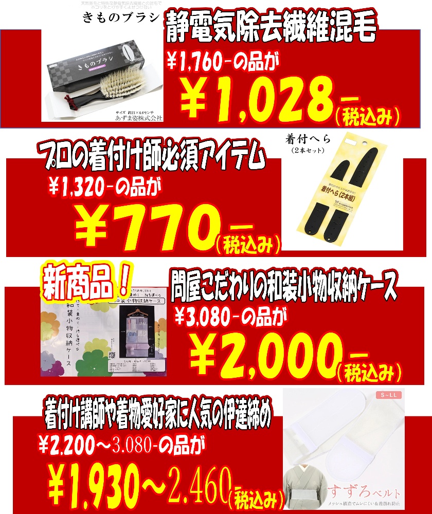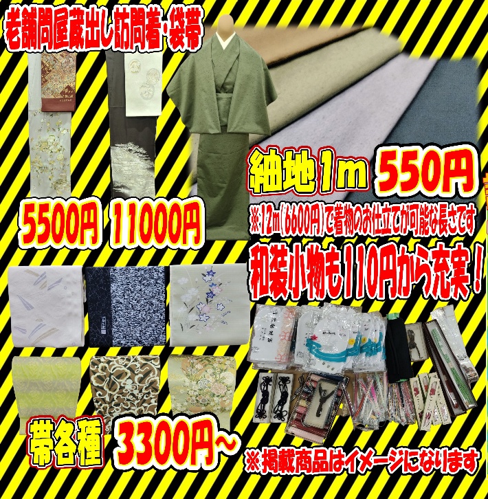 さらに織袋帯¥33,000以下とお着物入門セットとしてお値打商品もご用意いたします。